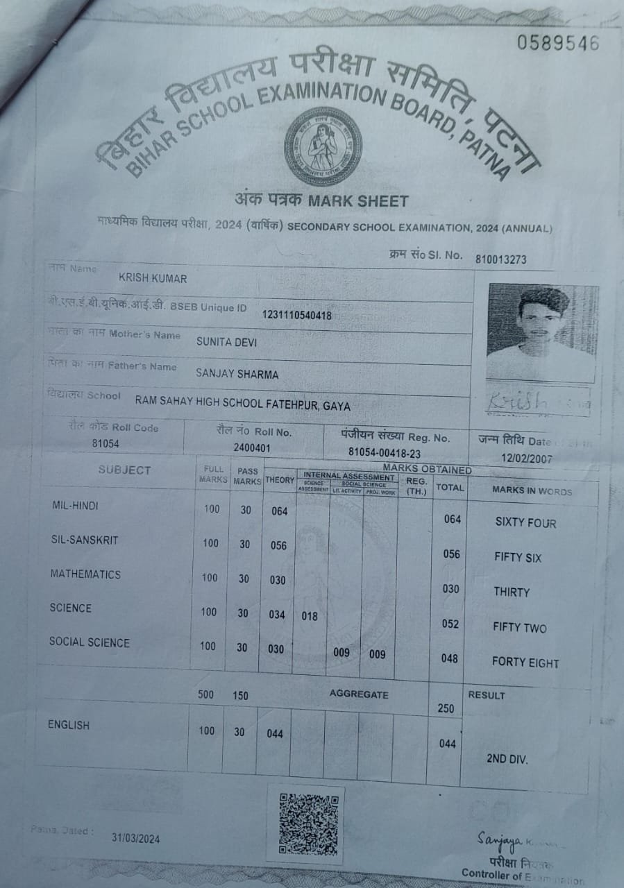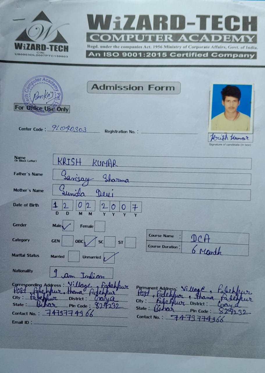 | Exam | Full Marks | Pass Marks | Marks Obtained |