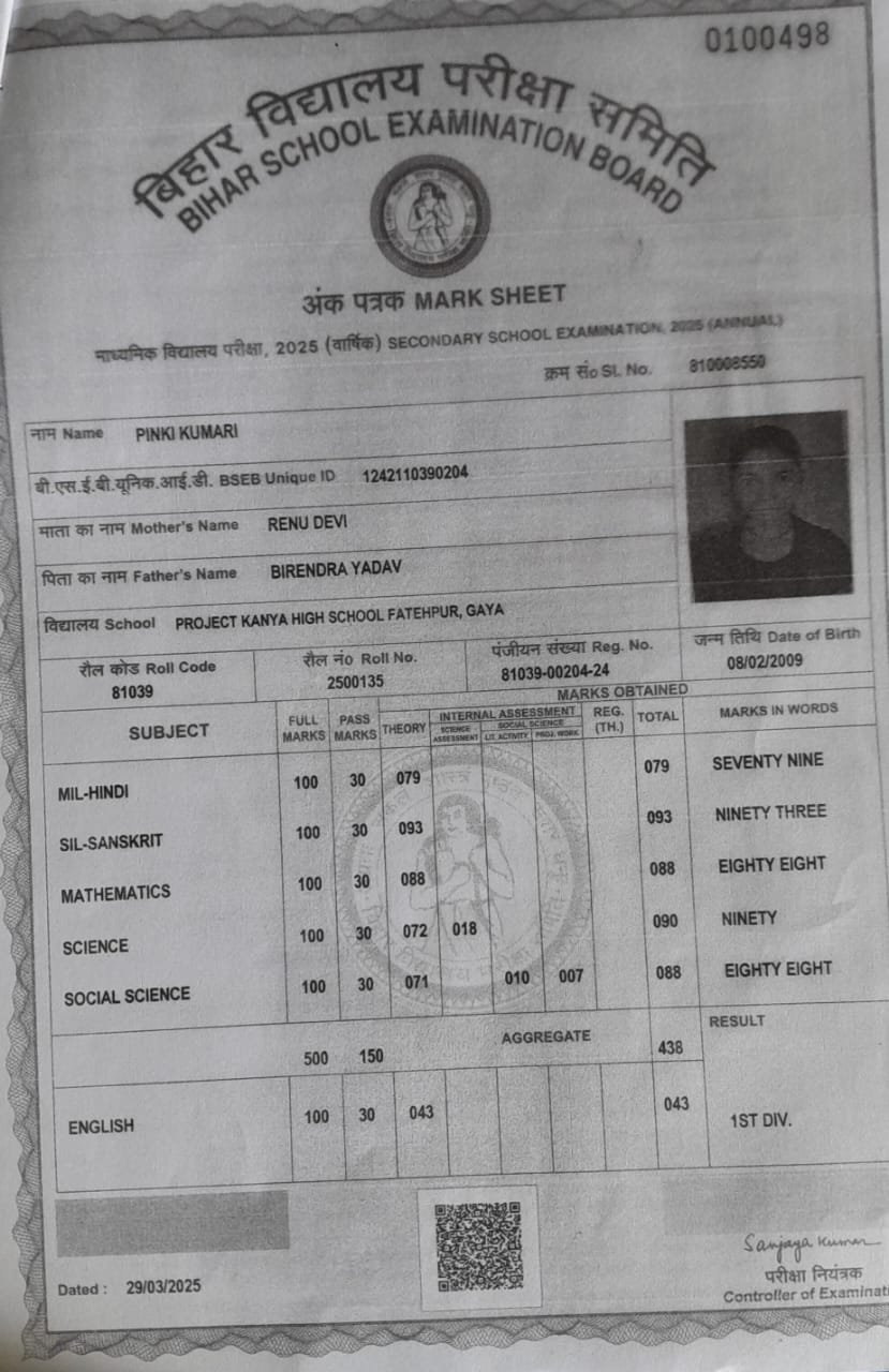| Exam | Full Marks | Pass Marks | Marks Obtained |