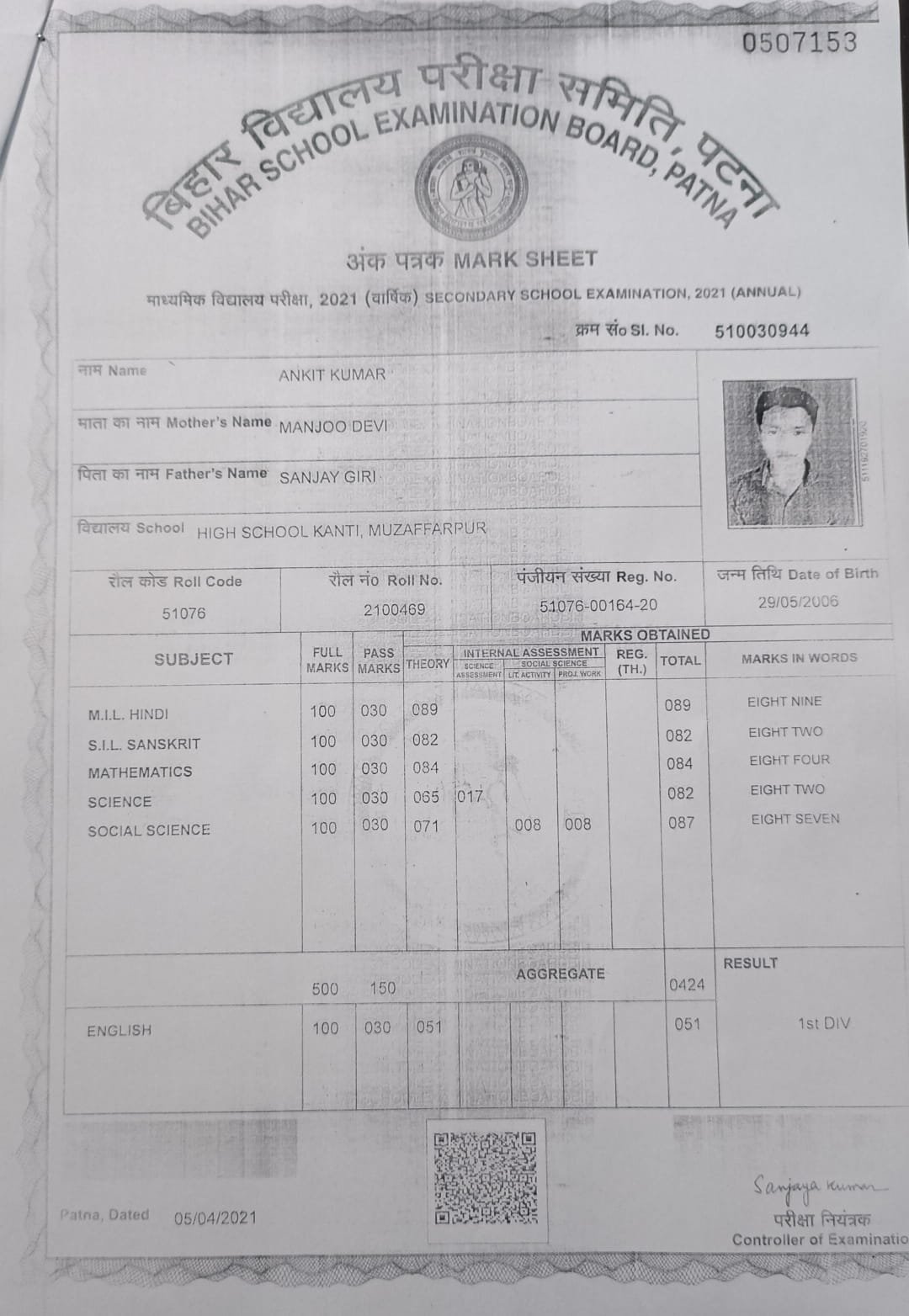 | Exam | Full Marks | Pass Marks | Marks Obtained |