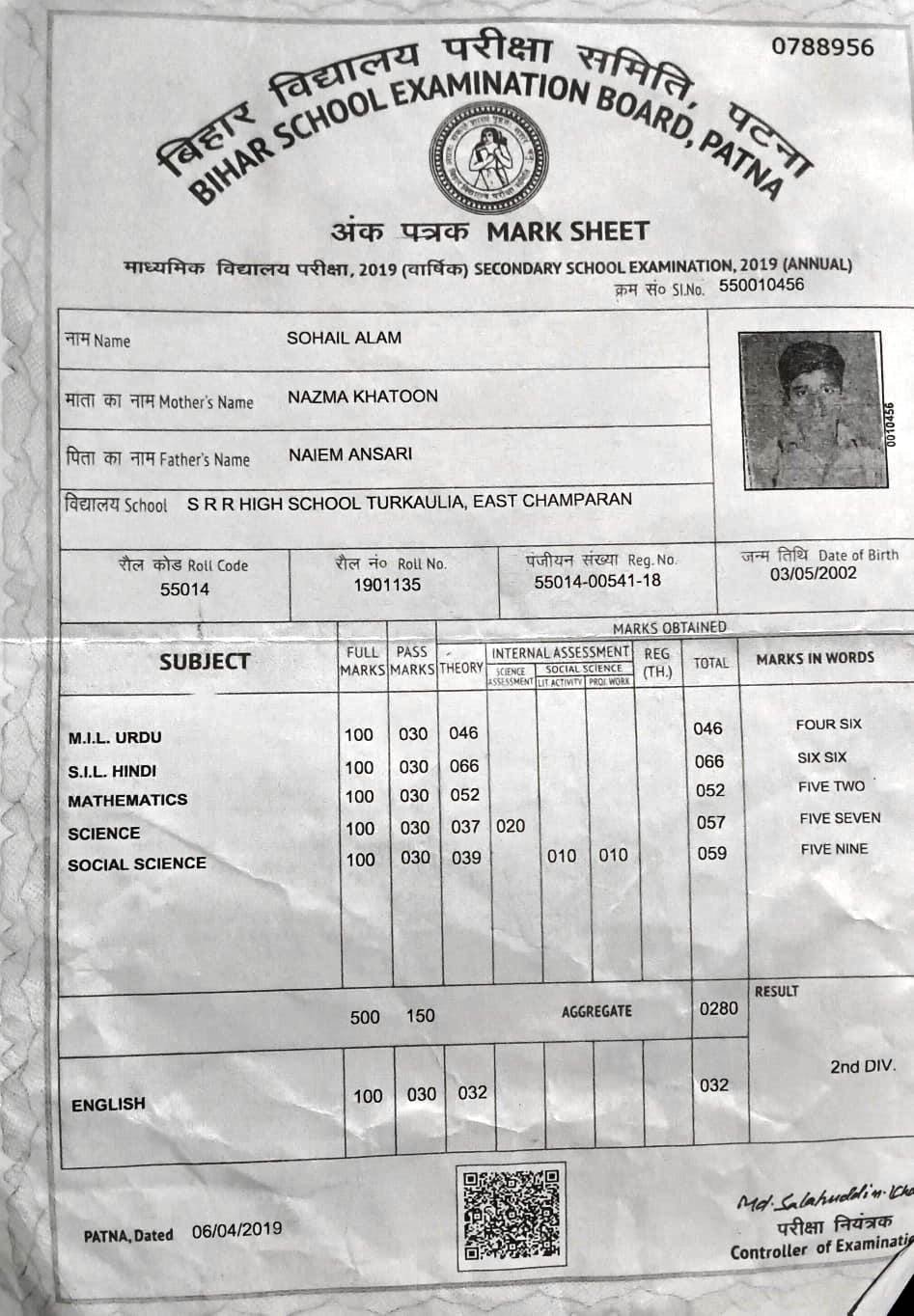 | Exam | Full Marks | Pass Marks | Marks Obtained |