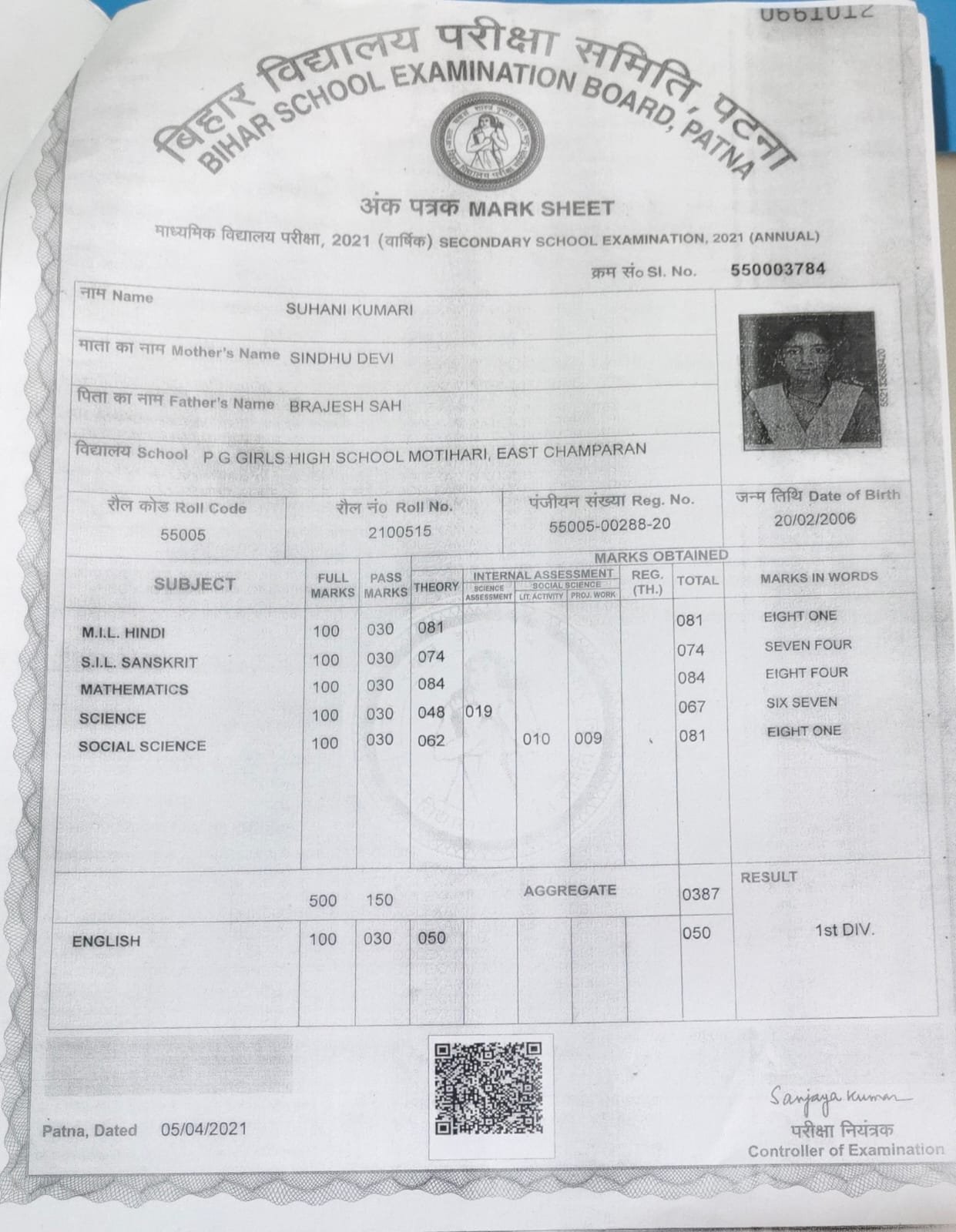 | Exam | Full Marks | Pass Marks | Marks Obtained |
