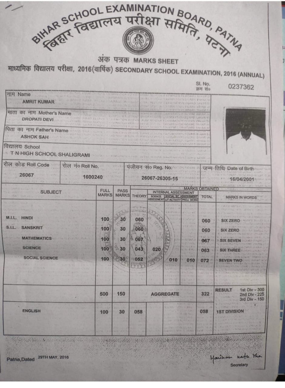 | Exam | Full Marks | Pass Marks | Marks Obtained |