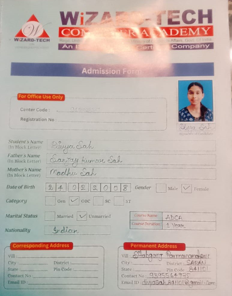 | : | Advance Diploma in Computer Application ( ADCA ) | |