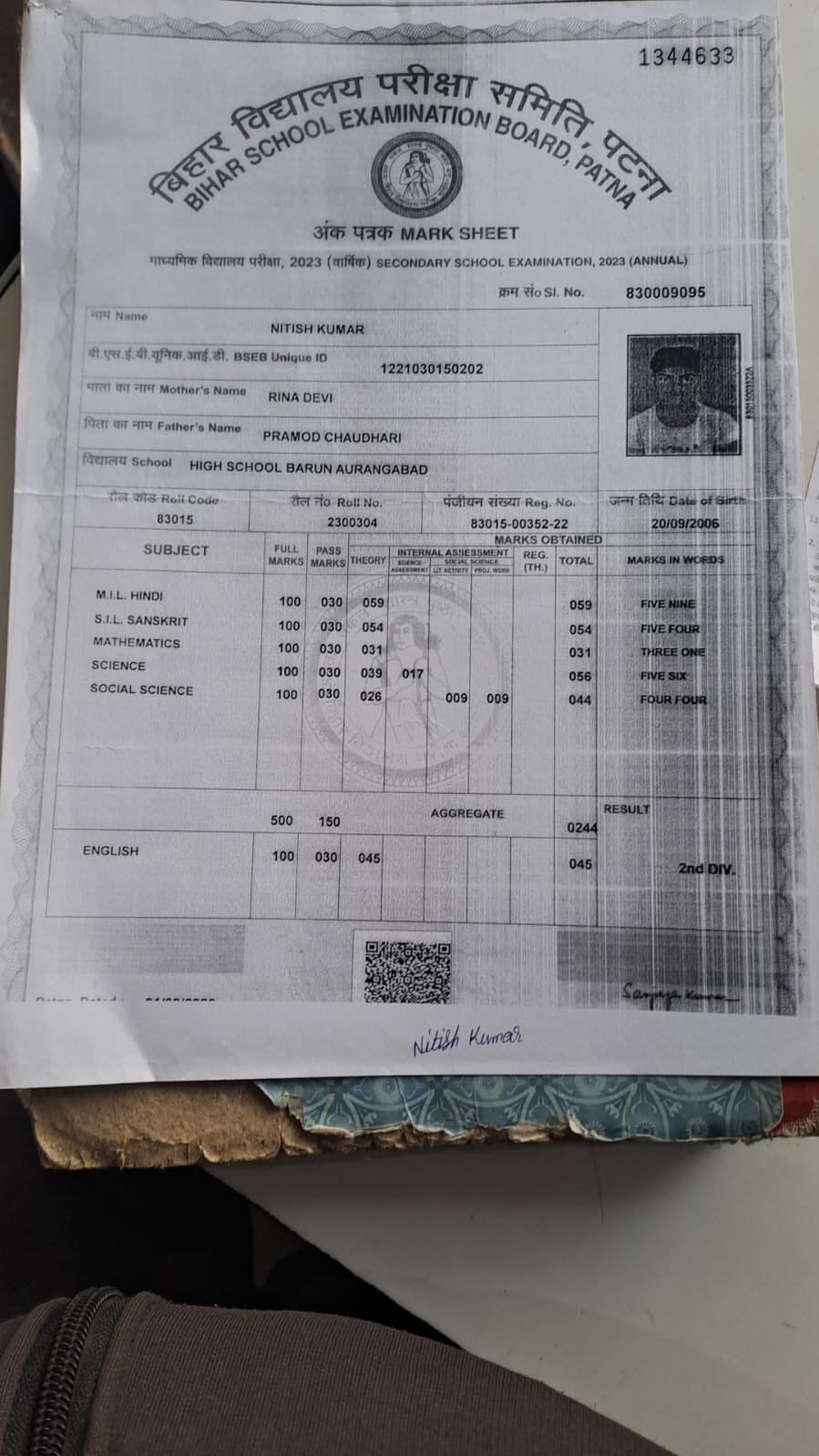 | Exam | Full Marks | Pass Marks | Marks Obtained |