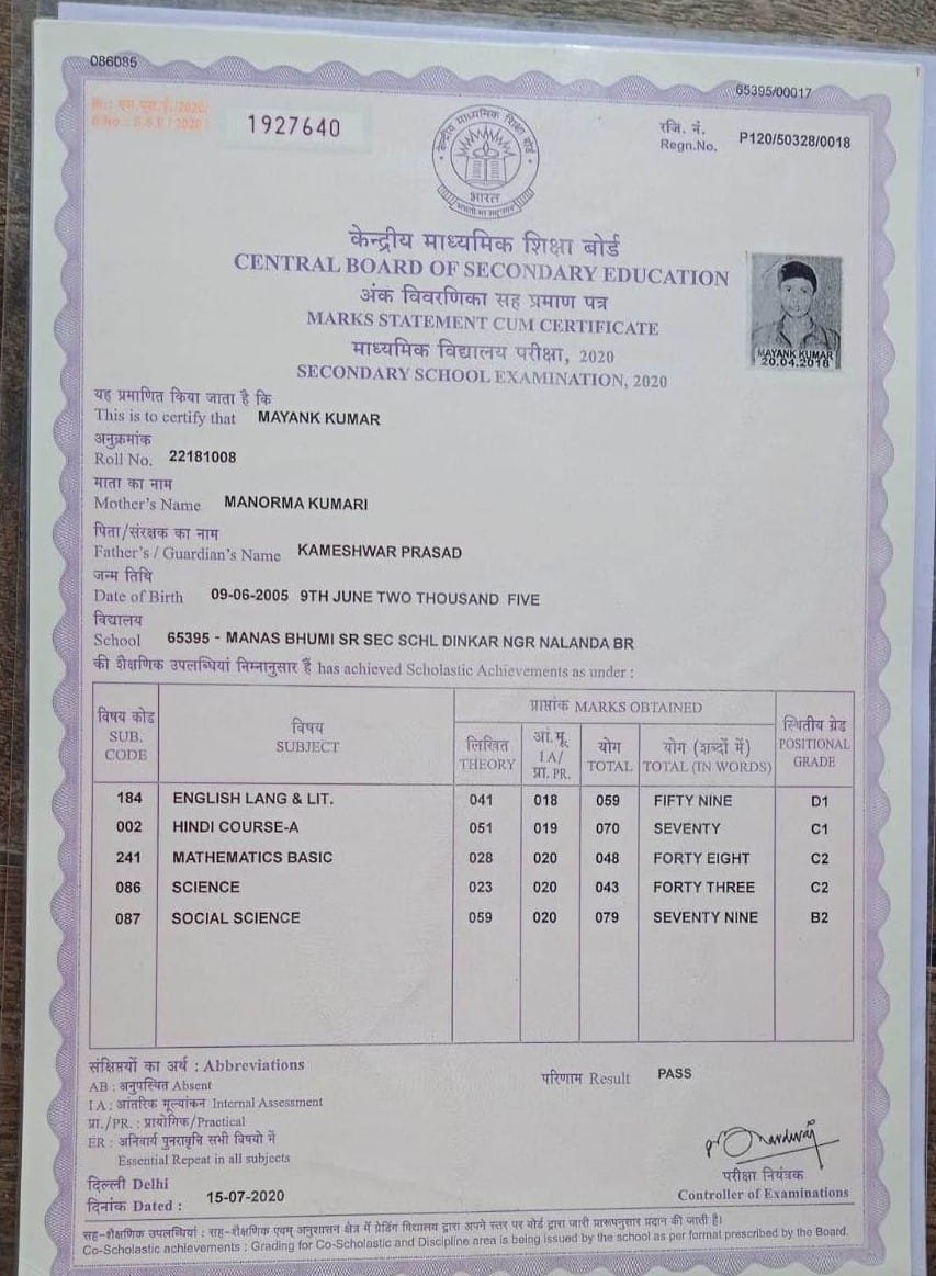 | Exam | Full Marks | Pass Marks | Marks Obtained |