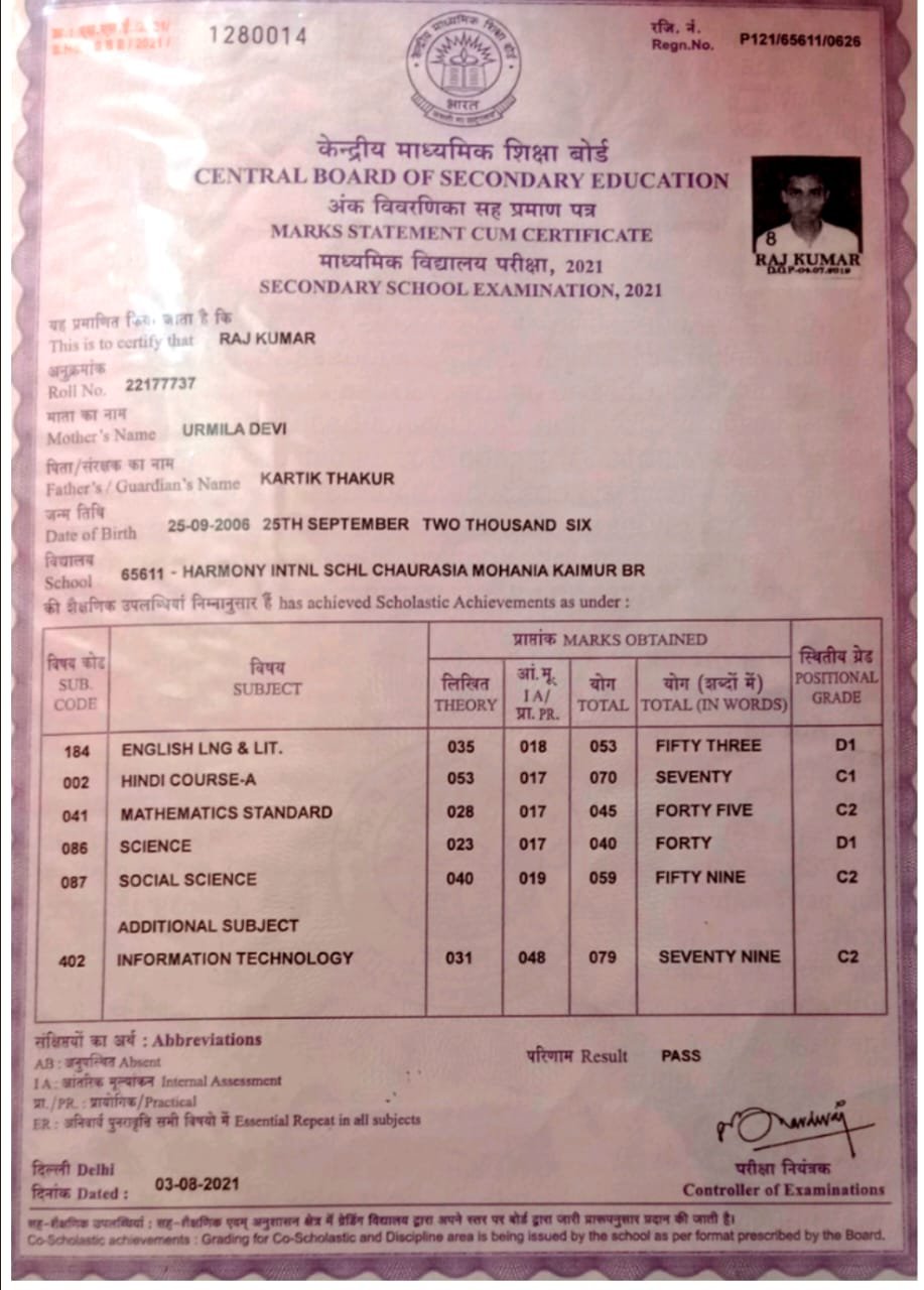 | Exam | Full Marks | Pass Marks | Marks Obtained |