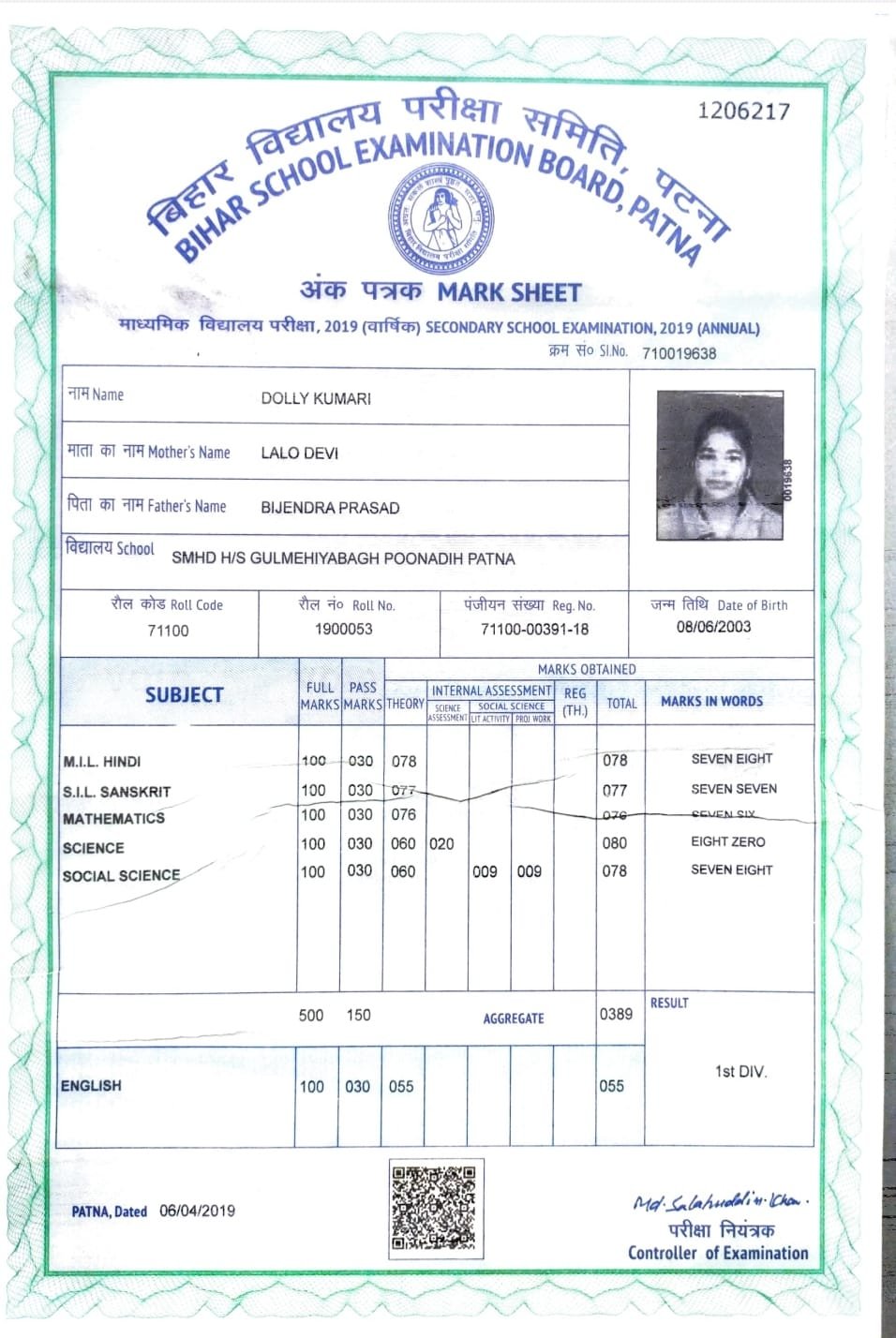 | Exam | Full Marks | Pass Marks | Marks Obtained |