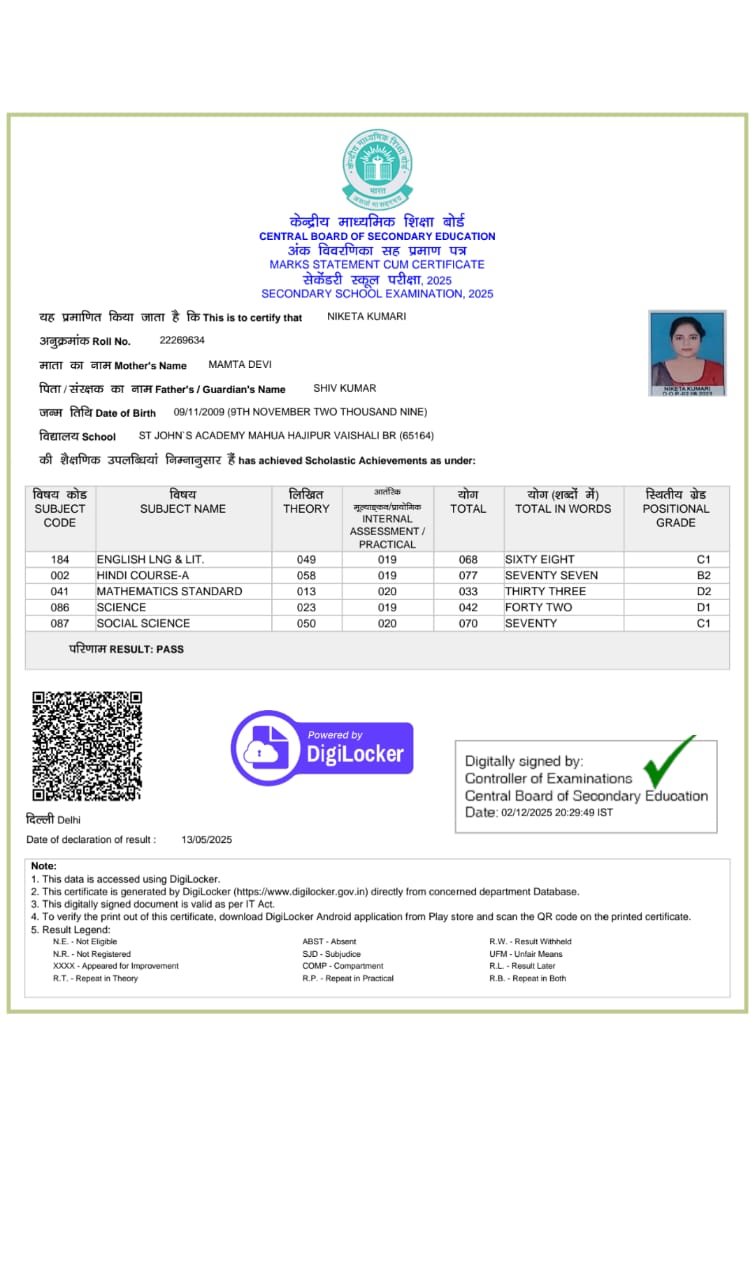 | Exam | Full Marks | Pass Marks | Marks Obtained |