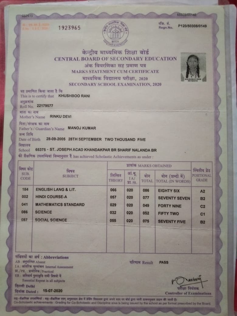 | Exam | Full Marks | Pass Marks | Marks Obtained |