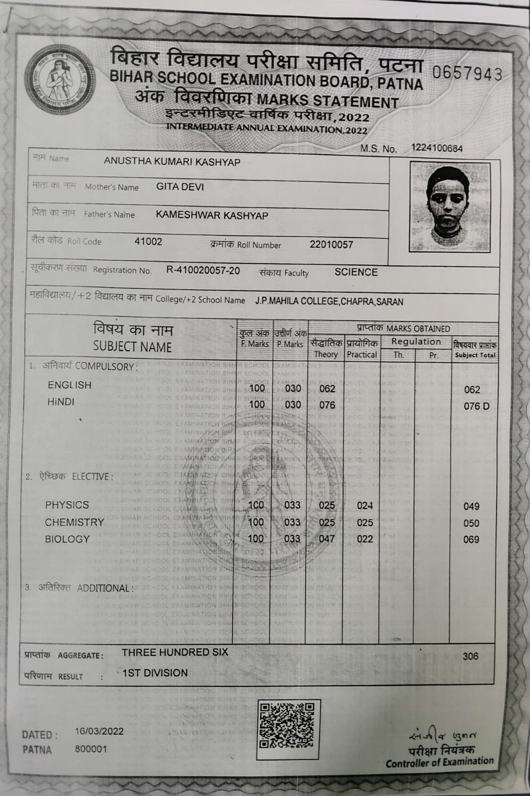 | Exam | Full Marks | Pass Marks | Marks Obtained |