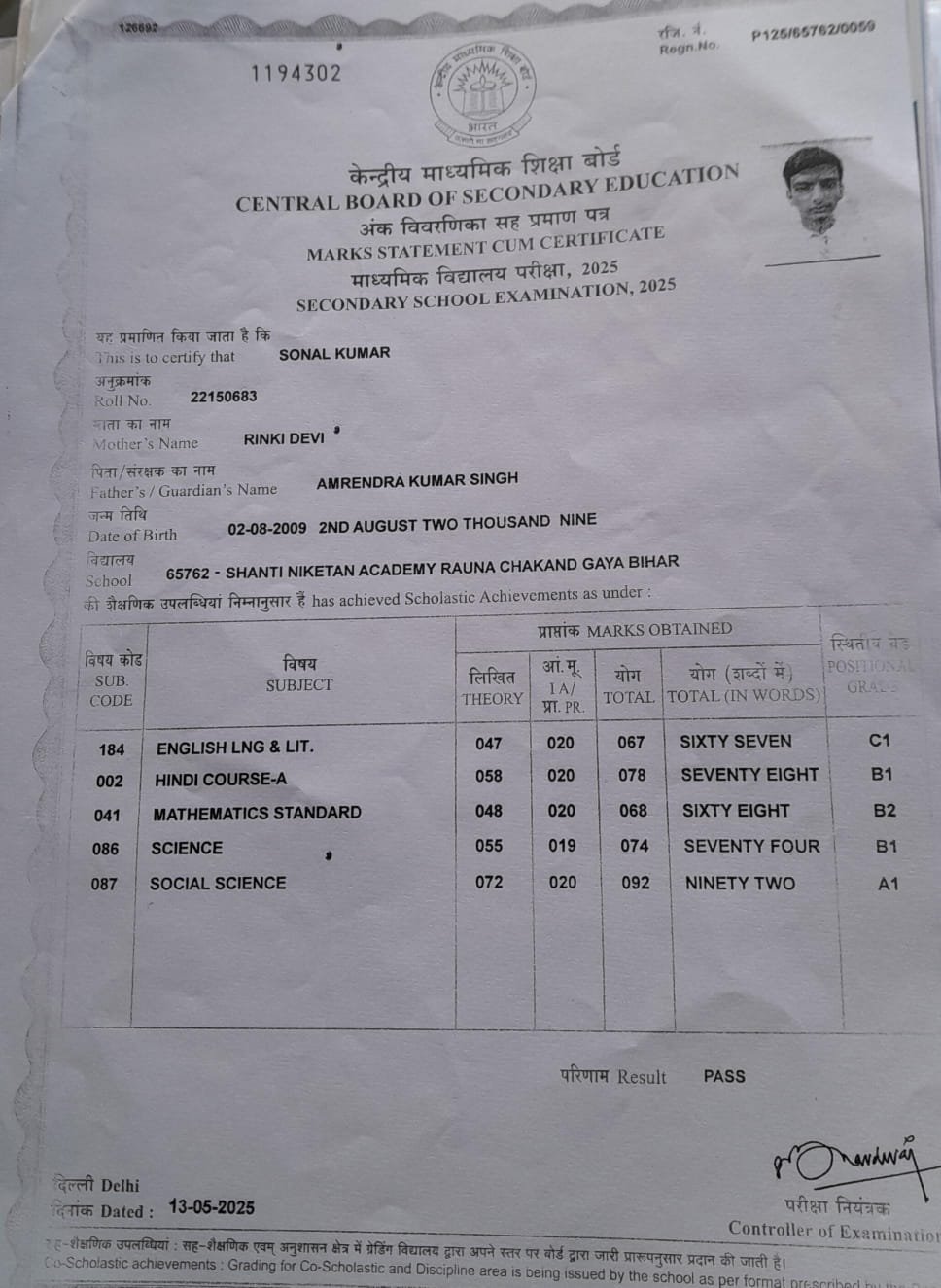 | Exam | Full Marks | Pass Marks | Marks Obtained |