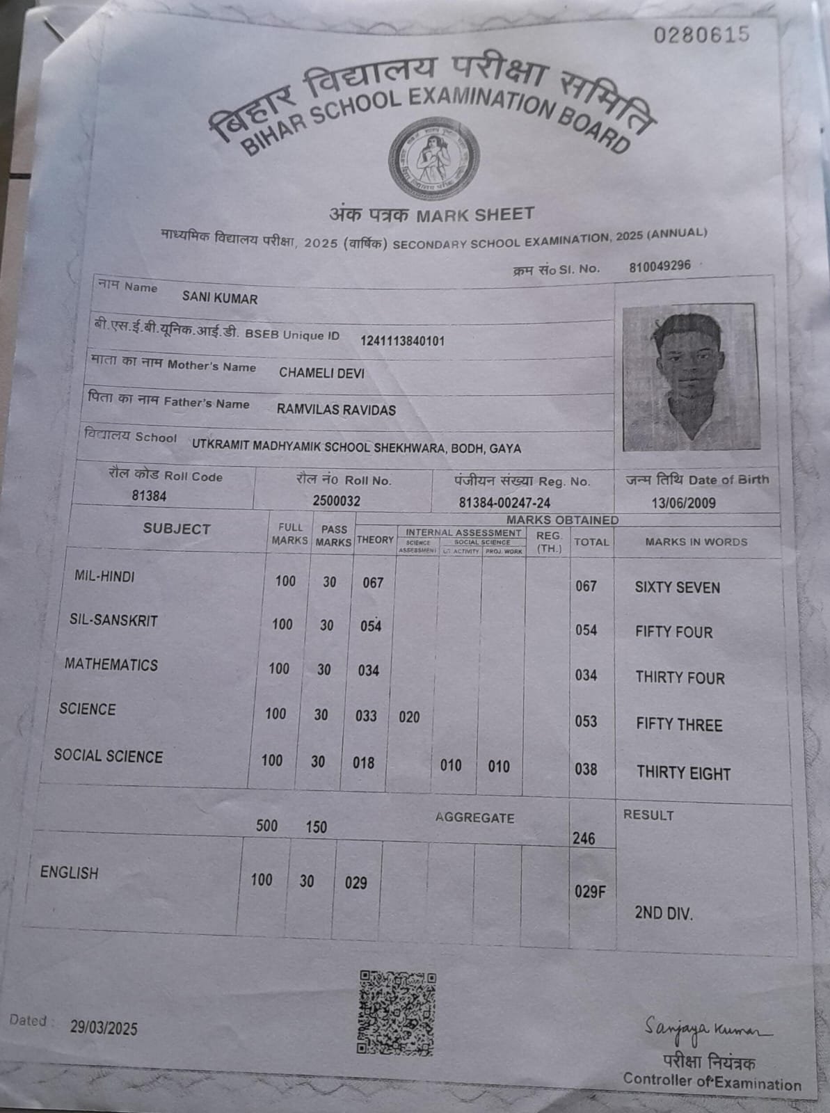 | Exam | Full Marks | Pass Marks | Marks Obtained |