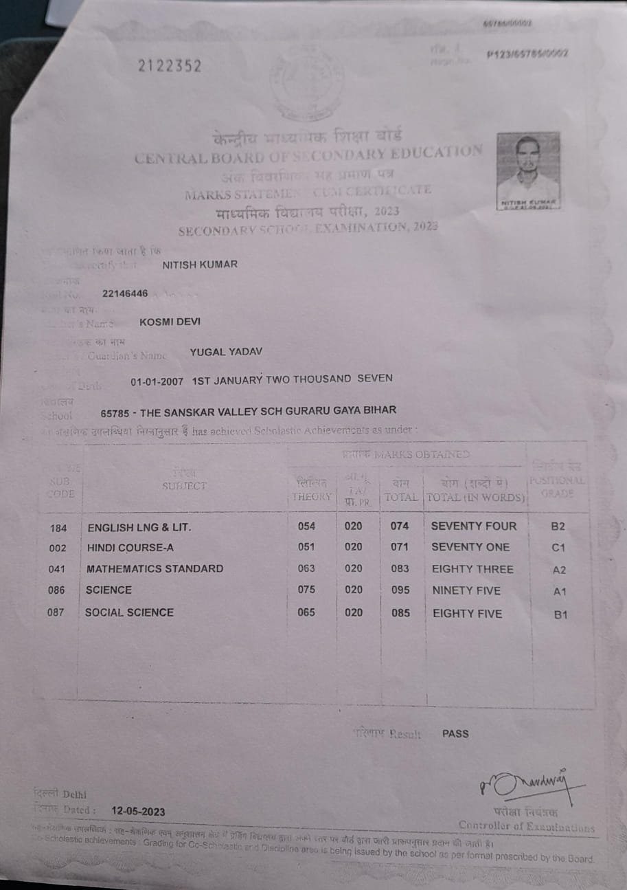 | Exam | Full Marks | Pass Marks | Marks Obtained |