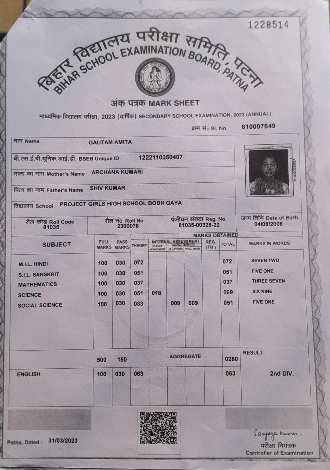 | Exam | Full Marks | Pass Marks | Marks Obtained |