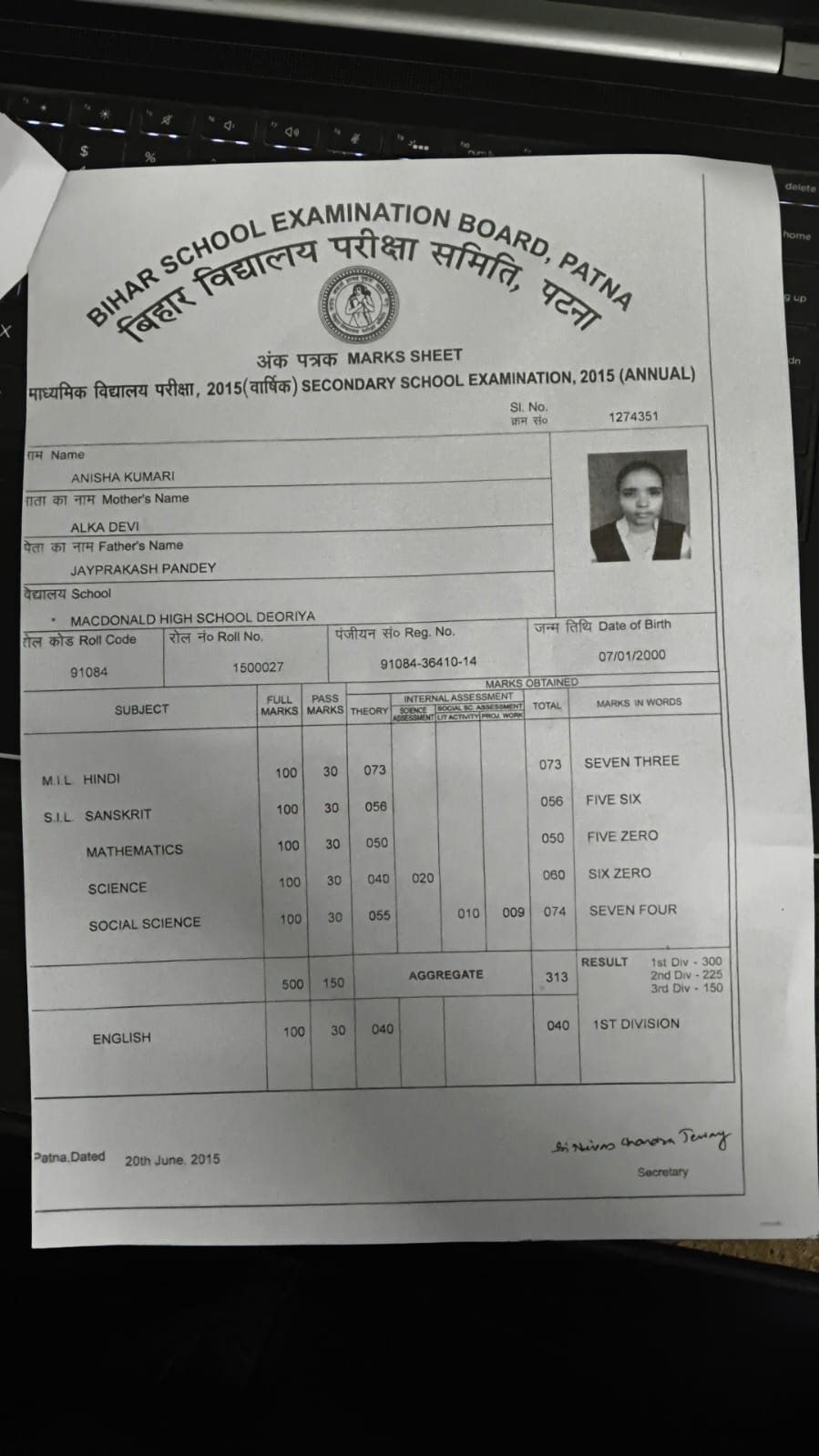 | Exam | Full Marks | Pass Marks | Marks Obtained |
