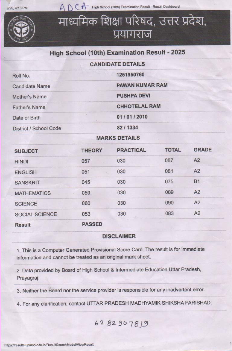 | Exam | Full Marks | Pass Marks | Marks Obtained |