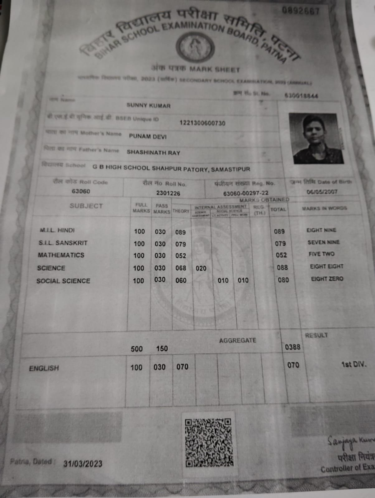 | : | Shahpur, Patori, Samastipur, Bihar, | |