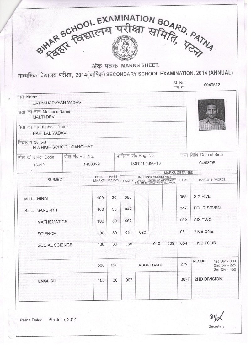| Exam | Full Marks | Pass Marks | Marks Obtained |
