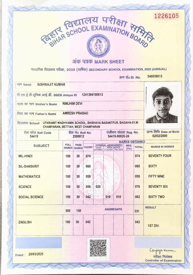 | : | Bagaha-1, West Champaran, Bihar - 845101, | |