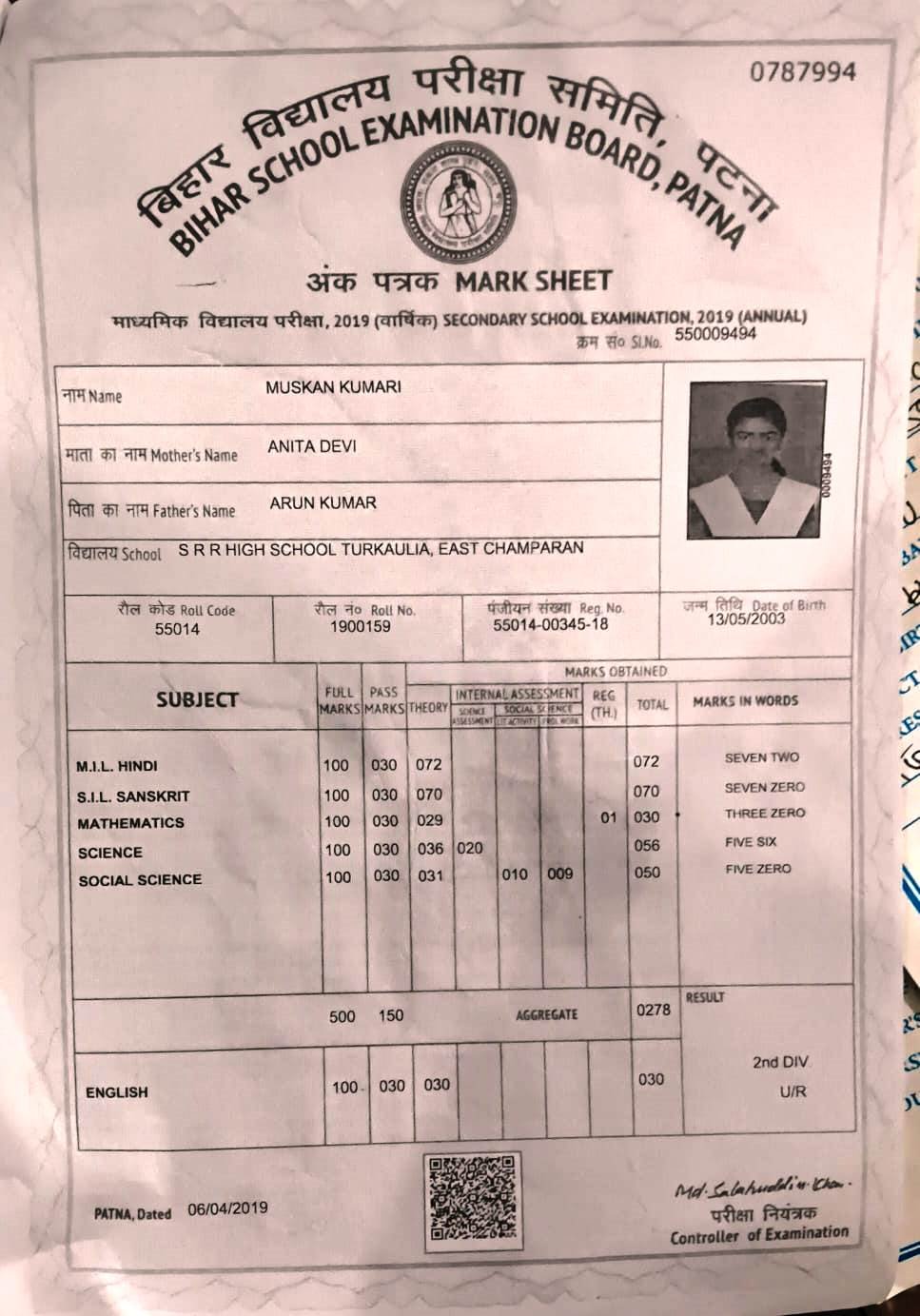 | Exam | Full Marks | Pass Marks | Marks Obtained |