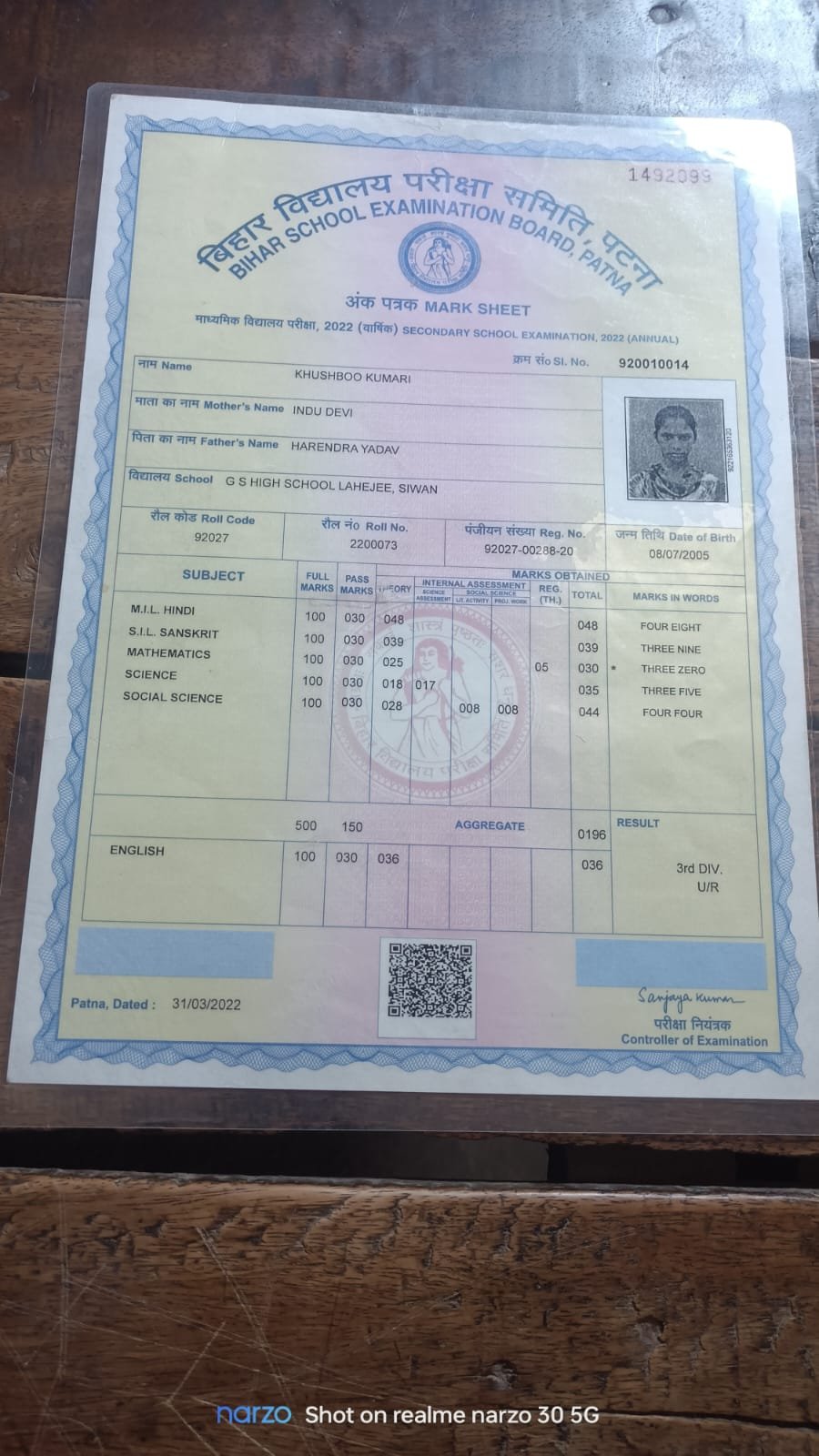 | Exam | Full Marks | Pass Marks | Marks Obtained |