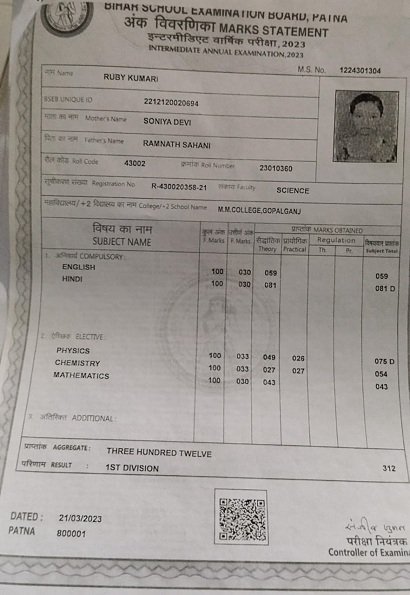 | Exam | Full Marks | Pass Marks | Marks Obtained |