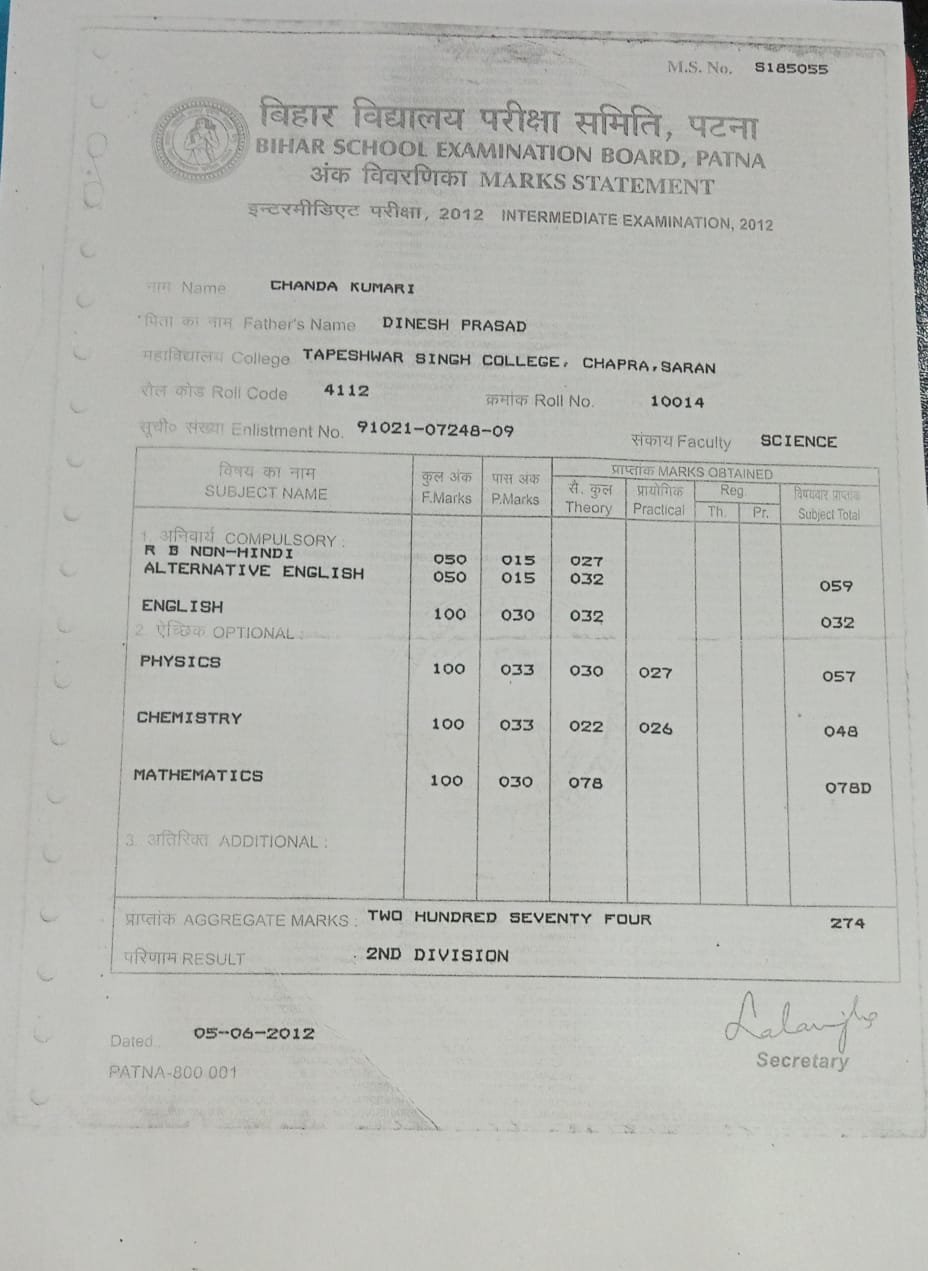 | : | Bhairopur, Doriganj,Saran Bihar , 841211 , | |