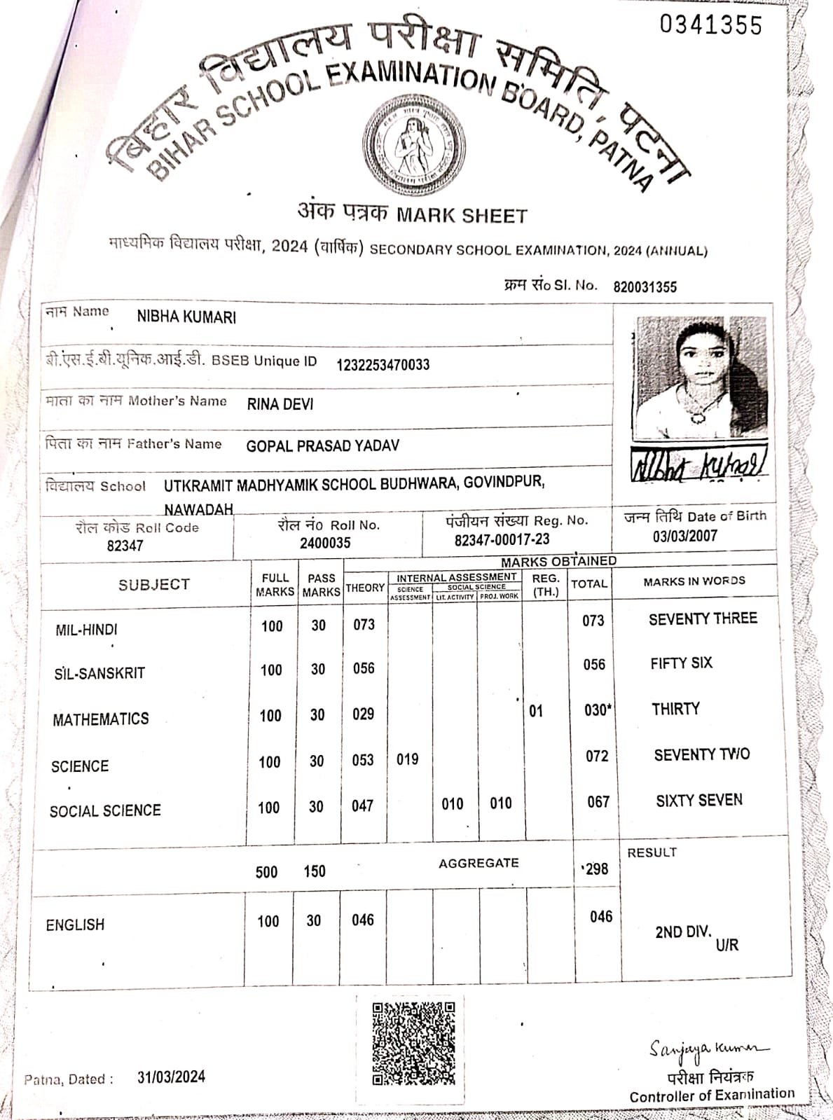 | Exam | Full Marks | Pass Marks | Marks Obtained |