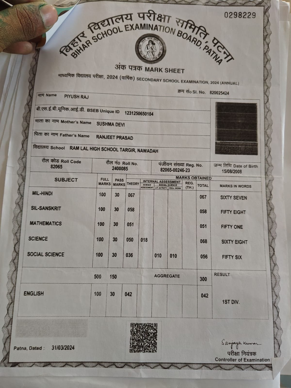 | Exam | Full Marks | Pass Marks | Marks Obtained |