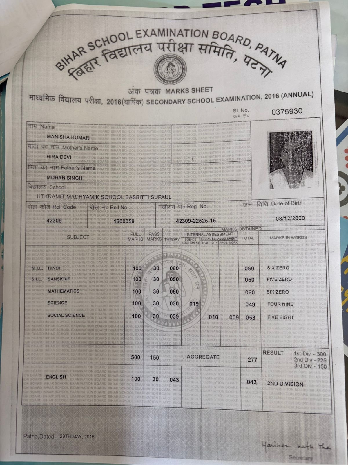| Exam | Full Marks | Pass Marks | Marks Obtained |
